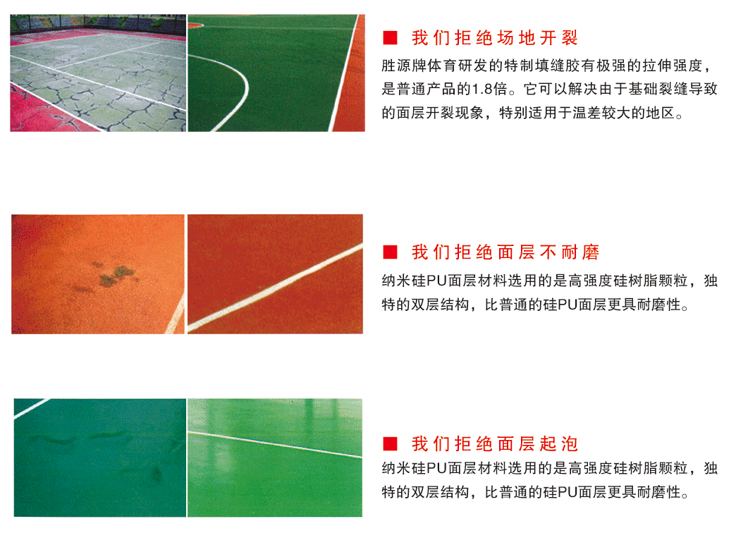 環保型硅PU系由水泥基礎界面、修補層、彈性層、面涂料組成的彈性運動涂料系統,單組分直接涂刮,不同的施工厚度,可以得到不同彈性的涂層該涂層有持久的彈性,對水泥地面和瀝青地面都有優異的結合容易刮涂,干膜耐侯耐水優異。